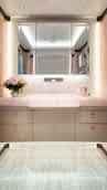 The 55-metre Bannenberg & Rowell Design designed yacht is a bespoke family retreat and proof that size does not matter when it comes to building a true Lürssen – the quality of engineering and design on the large scale, as well as the smallest detail is evident throughout. As a private family yacht, the owners wanted minimal crew and the ability to cruise in secluded locations not easily accessible for larger yachts. SHENOA’s functionality for family gatherings ranges from the safety gates and high bulwarks on her exterior to her cleverly designed flexible guest cabins. In their initial design concept, Bannenberg & Rowell Design were influenced by studies based on the classic yacht CARINTHIA VI, designed by Bannenberg the Elder, and built by Lürssen in 1973. Through several design iterations, SHENOA evolved into a yacht with a strong new identity whilst incorporating her Lürssen/Bannenberg heritage. A fearless use of colours and textures, as well as museum-quality interior furniture pieces, underline the approach of tremendous attention to detail – not only in the interior spaces but also in her technical areas.