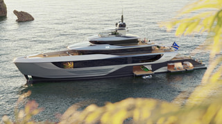AIR DESCRIPTION Air is aimed at a ‘green-fingered’ owner and makes use of biophilic elements throughout her five decks. The master suite, positioned forward on the main deck, comes complete with its own interior garden sequestered in the bow, as well as two vegetable patches. Air takes her design cues from both nature and the electric vehicle market, and she is characterised by ‘clean and minimal shapes’. She was designed to inspire. Air should offer an oasis of physical and mental well-being while encouraging environmental awareness. The nature theme continues on the main deck aft, where a two-tier waterfall swimming pool sits, inspired by the Travertines of Pamukkale in Turkey. A glass bottom reflects light down into a beach club bar below, where a 7.5 metre tender can be stored, while the waterfall feature fills a second pool on the swim platform. Other highlights include a library on the bridge deck and a large curved wine rack integrated into the dining saloon. Air's 'green' design also extends to her energy supply. Solar panels are integrated into three levels of the superstructure while windows utilise heat mirror technology to reduce energy consumption on board. Smart technology on board will include a digital ceiling where sensors are able to anticipate lighting needs as guests move about the boat.