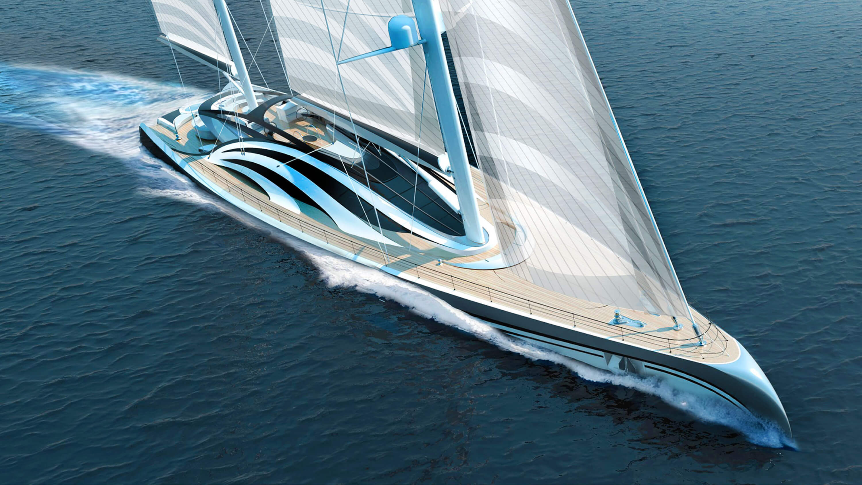 INNATUS embodies a unique fusion between organic architecture and functional design. The name is Latin for the word natural, a theme that has been carried throughout the design process. It was always my intention to design INNATUS as if it had been shaped by nature over thousands of years, resulting in an exterior which makes a statement in any surroundings, yet complements the spectacular environments it will be exploring. INNATUS utilises a Bermuda ketch rig, which ensures maximum comfort and control over long distances. A similar approach has been applied to the interiors with an arrangement that is not only functional and comfortable, but which brings the owner and guests even closer to the thrill of sailing. This is achieved through forward sailing lounges, one in front of the bridge and one above. The end result is a vessel which not only meets the needs of a long-range sailing yacht, but which also makes a statement about the relationship between nature and yacht design.