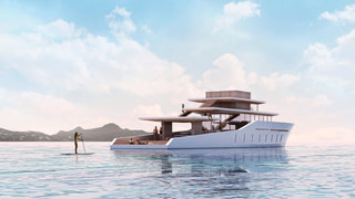 Портофино известен по огромному количеству вилл, расположенных на берегу бирюзового Средиземного моря и по многочисленным красивейшим пейзажам, сливающимся с крутыми склонами. Эти архитектурные нюансы вдохновили заказчика на определенный образ жизни на яхте. Результат - разделенные на уровни помещения: террасы различных размеров, способствующие плавному переходу в интерьере между помещениями внутри и снаружи, а также необходимости жилых помещений для гостей на борту. Каждая терраса имеет уникальную форму, что делает ее многофункциональной в использовании, как например в качестве кинотеатра под открытым небом, трамплина для прыжков, гостиной, спортзала, танцпола или даже для показа мод. Самое главное - Le Petit Terrasse - создание дома на воде. Сущность чертежа Ле Корбюзье - открытая планировка. Концепция Le Petit Terrasse представляет собой скелетную структуру. Система перекрытия фундаментальных плит, объединенных вместе на проверенном корпусе, создает ощущение открытости и гибкости ярусов. Современное использование укладки палуб на яхтах снижено до начальной формы. Экспериментирование с современной техникой укладки фундаментальных плит привело к асимметричной форме яхты. Чтобы увеличить открытую область для личного и общего использования с различными уровнями, ряд выступающих террас накладывался слоями друг на друга. Все террасы соединены между собой лестницей, которая ведет на сандек. В течение дня на них расположены наружные диваны, шезлонги и спортивный инвентарь. Вечером можно отодвинуть мебель, создавая при этом большую танцплощадку или обеденную зону под открытым небом.