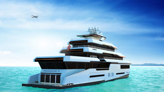 «Проект был назван средним именем австрийского композитора Вольфганга Амадея Моцарта. Оно происходит от латинских слов amare (любить) и deus (Бог) и означает "любовь к Богу". Как и музыкальные композиции Моцарта, дизайн этой яхты подчеркивает элегантность и баланс. Это баланс между интерьером, экстерьером и функционалом, которые созданы дарить удовольствие. Чтобы владелец вновь почувствовал себя молодым, это судно было оборудовано зонами для развлечений, среди которых игровая комната, бильярдная и бассейн для вечеринок, который также можно использовать для проведения частных вечеринок во время пребывания яхты в порту. Поскольку Amadeus X является экологичной яхтой, здесь имеется множество солнечных панелей и батарей, которые установлены на каждой крыше открытых палуб. Amadeus X обещает подарить своему владельцу эмоции и чувство комфорта, чтобы вдохновлять его на новые блестящие бизнес-идеи в будущем».