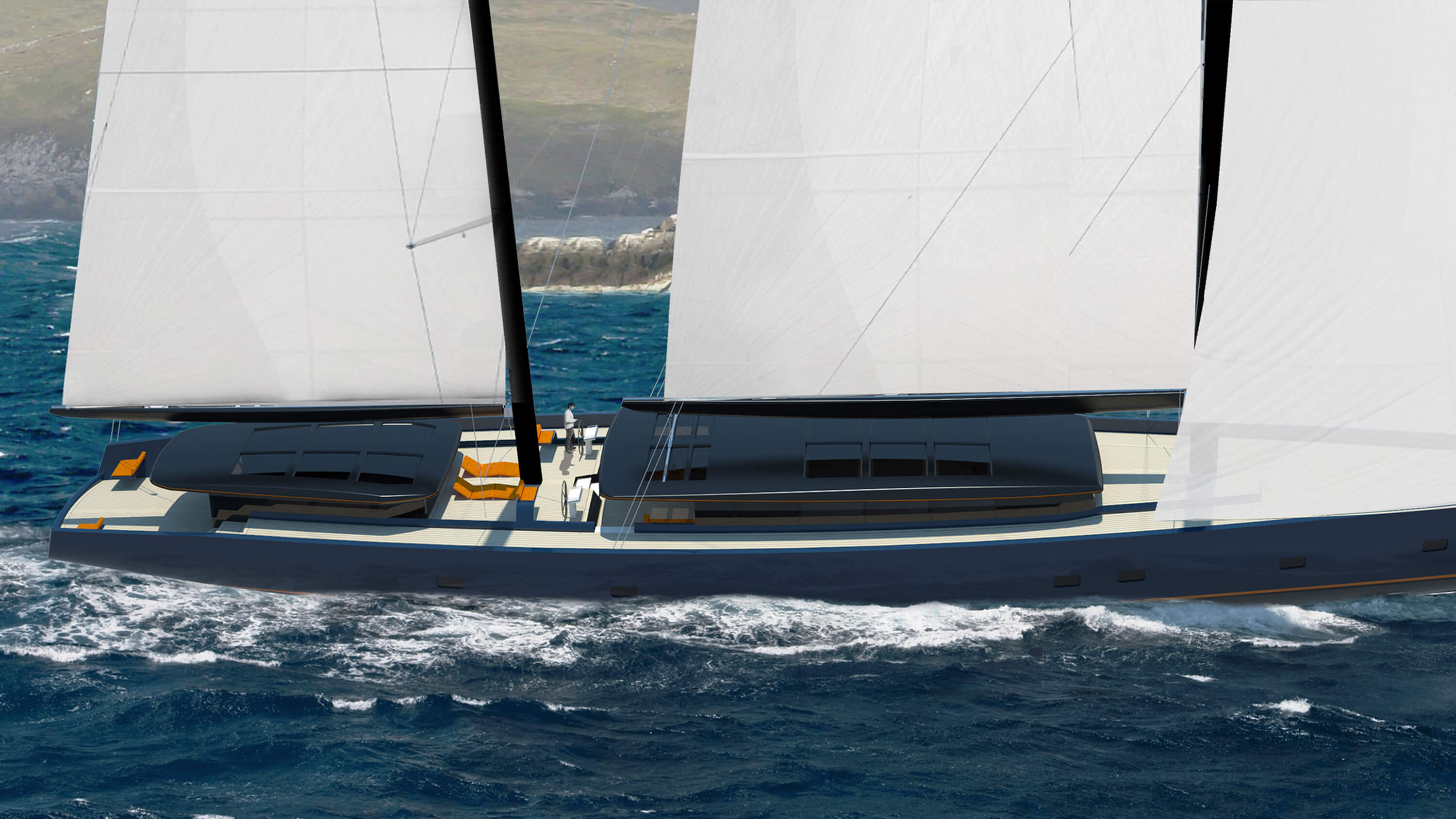 Проект "Max Panama" был разработан, чтобы превзойти все ожидания потенциального владельца супер-яхты с точки зрения красоты и эффективности. Так как рынок яхт длиной от 50-ти метров уже перенасыщен однопалубными парусными яхтами, было необходимо разработать новый и необычный дизайн. Основной задачей этого проекта было создать неповторимый внешний вид, который изменит привычное представление о форме парусных яхт с жилыми помещениями. Желание клиента иметь в своем распоряжении отдельные аппартаменты с личным кабинетом и семейным салоном для отдыха было еще одним существенным фактором, который повлиял на внешний вид яхты. Вторая палубная рубка /надстройка является решающим элементом проекта "Max Panama", так как она не только способствует необычному дизайну, по сравнению с привычной формой яхт, но также является оптимальным решением для исполнений желаний клиента. Как только было принято решение в направлении дизайна, было потрачено много времени и сил, чтобы понять, как общее расположение яхты бузукоризненно сольется с экстерьером, создавая при этом оптимальный общий вид. Общее оформление является современной версией классического расположения двухмачтового парусного судна, при котором машинное отделение разделяет друг от друга обе жилые площади. Выходя из ультра-безопасной встроеной кабины, вы попадаете в обширный, открытый салон для семейного отдыха. Навигационная панель не заметна благодаря высокой рафинированной перегородке. В другое большое открытое помещение можно попасть, спускаясь по центральной лестнице на нижнюю палубу. Неофициальный зал/кинотеатр и столовая для официальных обедов соединены в одно помещение, создавая при этом превосходное сочетание комфорта и функциональности. За официальной столовой расположен главный камбуз, что сокращает путь для команды во время дежурства. За этой надстройкой расположены две просторные каюты для гостей и жилое помещение для членов команды из восьми человек. В распоряжении владельцов яхты находятся два отдельных входа в жилое помещение. По расположенной в кормовой части лестнице из главного салона вы попадаете в просторные гостевые каюты и ванную. Из этого коридора или через салон в кормовой части и кабинет можно пройти в спальни владельцев судна. Доступ в эти помещения возможен только через пляжную зону в кормовой части, что гарантирует максимум приватной сферы для владельца.