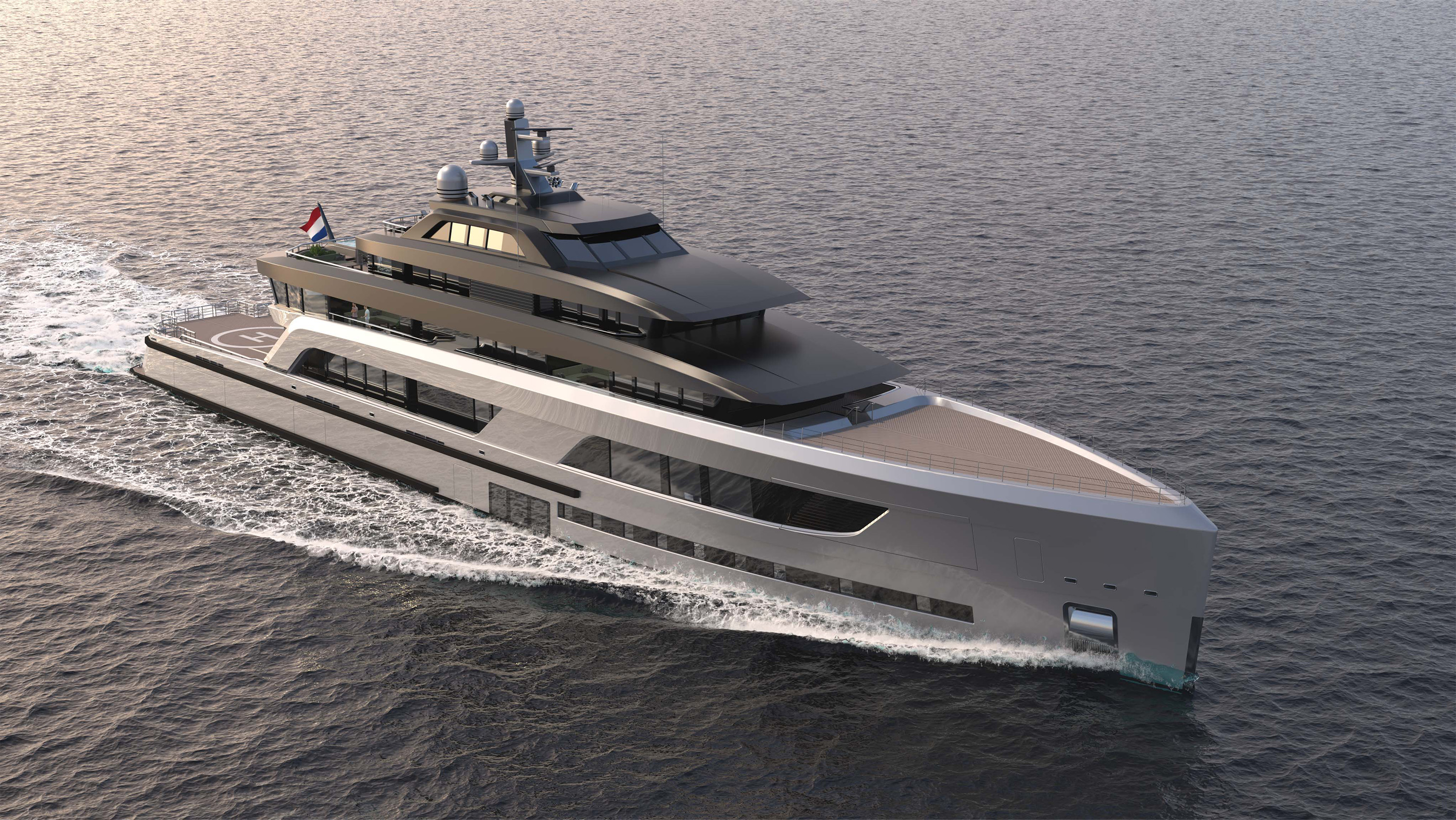 Frigus 这个名字在拉丁语中的意思是“寒冷”,以此谨向该游艇将要航行的高纬度地区致敬。其线条设计强劲有力,外观配色坚韧硬朗,这艘 90 米长的游艇明显有别于传统的游艇,其目的是进行探险、科学研究和各种活动。最突出的一个设计特色就是后甲板上得到认证的直升机停机坪,以及可伸缩的直升机机库。此外,应船主的要求,限定了晒太阳的户外空间,把桥面区域设计为休闲区,包括按摩浴缸、酒吧、户外厨房和餐桌。同时,内部设计注重景观因素,最多可容纳 12 位客人,设有一个水下休息室、一个位于下层甲板的游泳池和一个健康中心。其他设施包括电影院、酒窖和观察室。船主的冒险精神体现在其娱乐消遣器具的配备:该游艇配有两艘 8 米长的补给船、一艘 10 米长的补给船、一艘 Triton 潜艇、雪地摩托车、喷气式摩托艇、山地自行车、木筏以及各种潜水和滑雪装备。